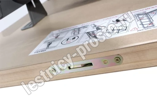 Установленные в лестнице угловые петли-шарниры нового образца придают ей высокую прочность и надежность, а также предохраняют короб от возможной деформации. Основное преимущество чердачной складной металлической лестницы LMS сводится к ее небольшим габаритам при сохранении высокой функциональности, прочности, надежности и эстетичности конструкции. Монтировать лестницу очень просто, для этого не придется затрачивать много времени и сил.