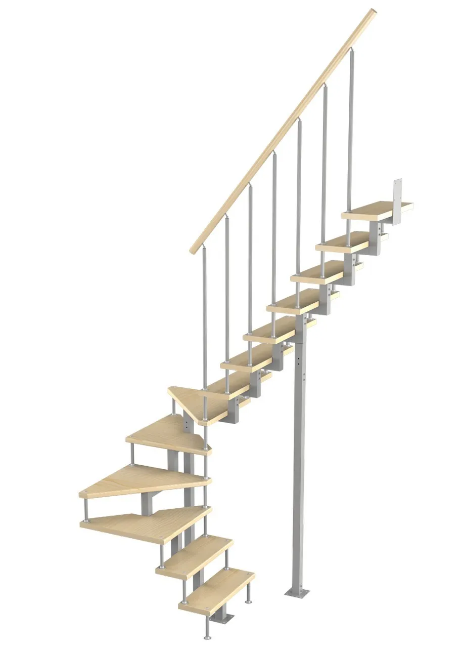 Поставляется с наконечниками на ножки, позволяющими быстрее подогнать длину лестницы к высоте помещения в случае излишнего подрезания лестницы или при изменении толщины пола. наконечники на ножки защищают пол от повреждений и увеличивают устойчивость конструкции.
