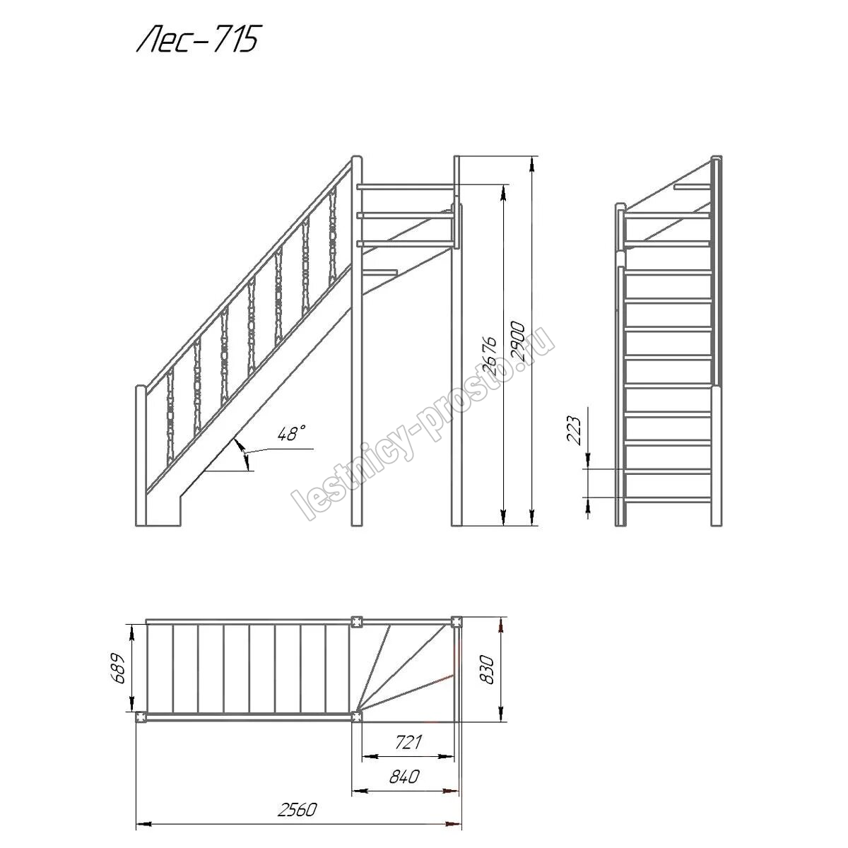 Деревянная межэтажная лестница Лес-715, Бук