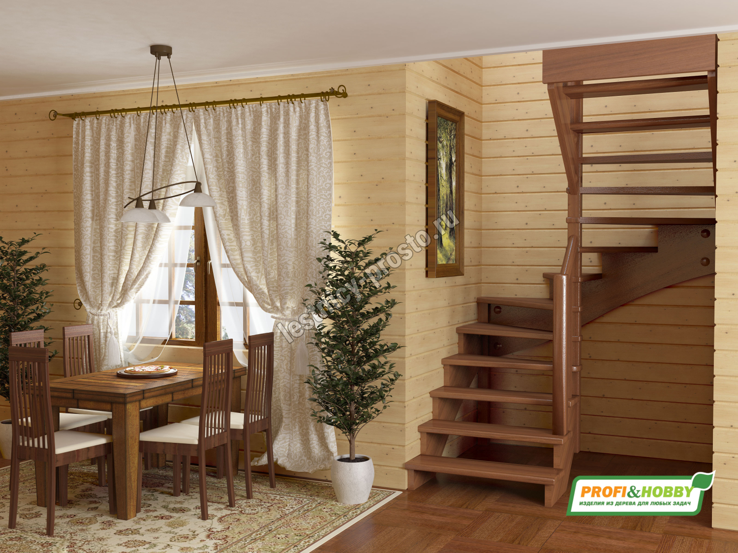 Ступени и поручень лестницы изготовлены из бука, остальные элементы из сосны.