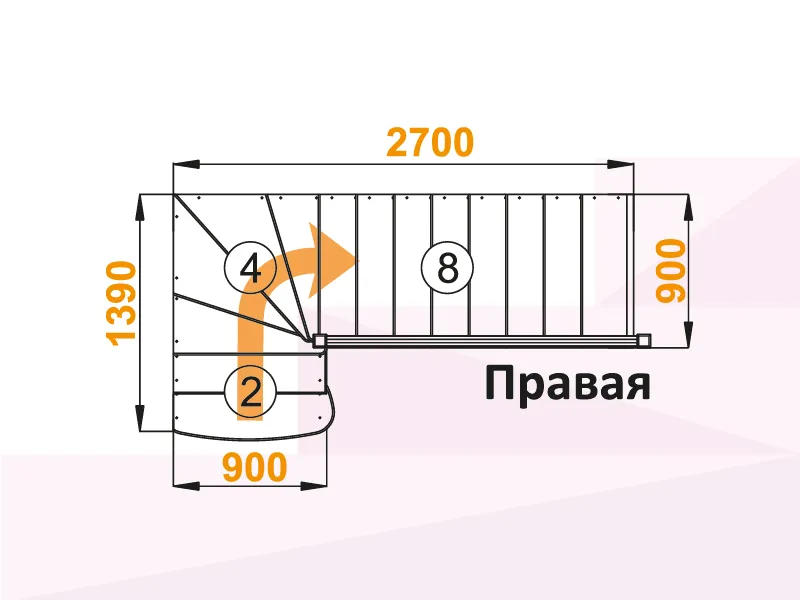 • Базовое ограждение (прямые столбы и балясины), сосна - по одной на ступень
