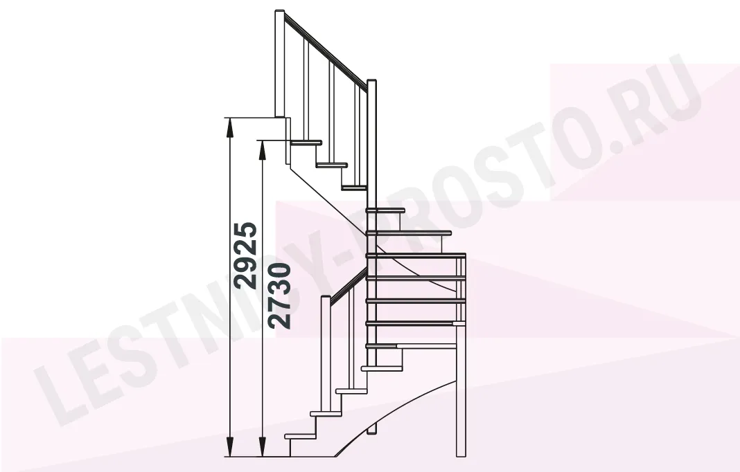 Базовый комплект включает в себя деревянные элементы лестницы с подступёнками и ограждения без какого-либо покрытия.