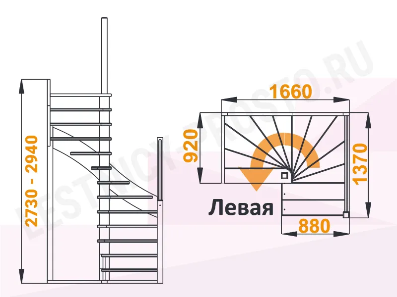 Схема лестницы К-005м/1 с поворотом налево