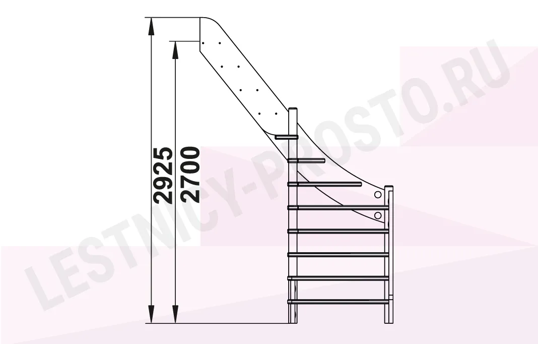 Схема лестницы ЛС-92М/2 с поворотом налево