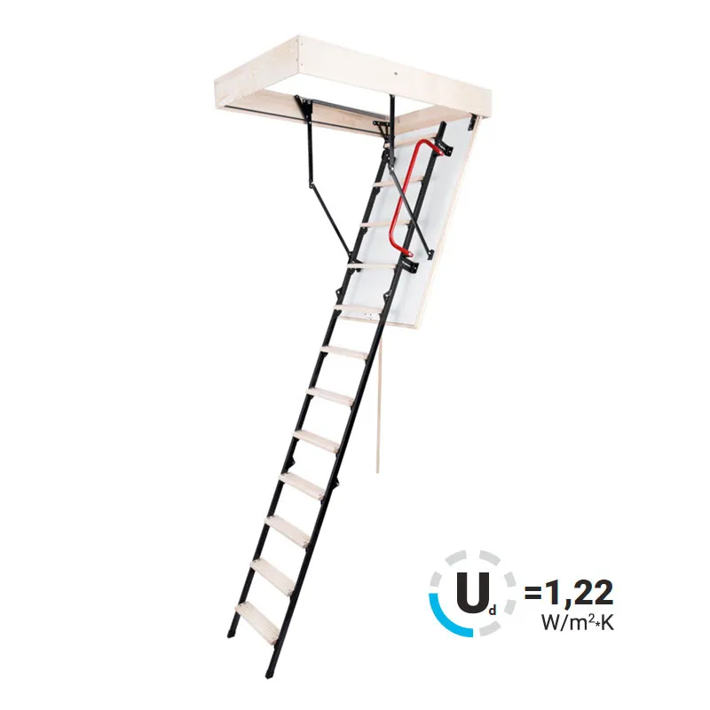 Усовершенствованная модель является малогабаритной и будет незаменима в небольших помещениях и дачных домиках. Компактная конструкция позволяет произвести монтаж в помещениях с небольшим проемом второго этажа. Удобная и надежная, эта лестница станет визитной карточкой вашего дома.