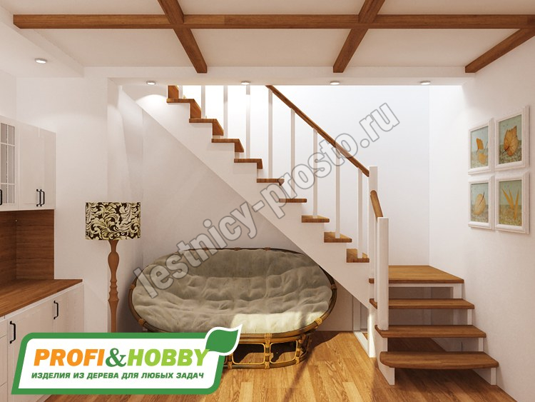 Ступени и поручень лестницы изготовлены из ясеня, остальные элементы из сосны.