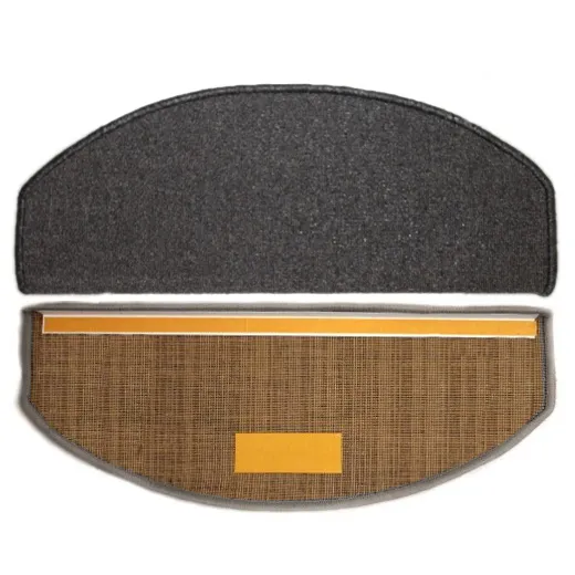 Ковровые накладки защищают ступени лестницы от изнашивания и служат безопасности, обеспечивая нескользящую поверхность. Края изделия окантованы. Внутренняя сторона ковровой ступени имеет специальные липкие накладки, для фиксации на ступеня лестницы.