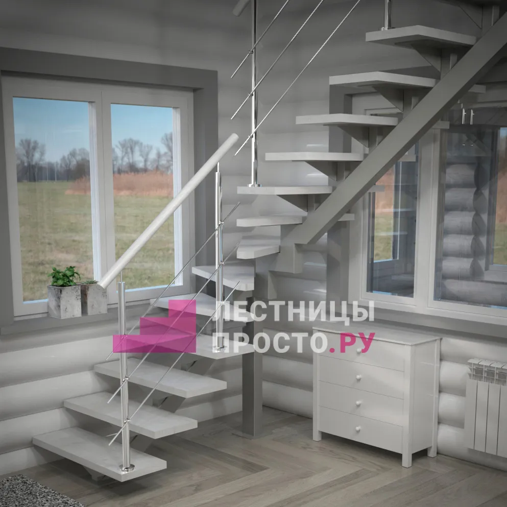 Каркас лестницы PROSTO MONO STEP TRINITY г-образная забежная с ограждением