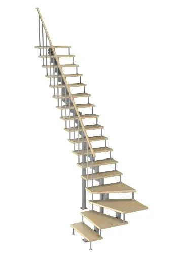 Универсальная лестница на металлическом каркасе с поворотной площадкой. Идеально дополнит любой интерьер, имеет современный вид и удобна в использовании. Монтаж осуществляется силами двух человек на объекте по указаниям, приведенным в паспорте на лестницу.