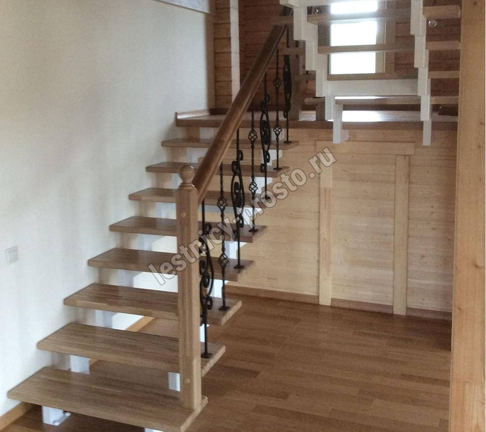 Ступени этого варианта лестницы изготовлены из сращенной лиственницы категории АВ, без какого-либо покрытия.