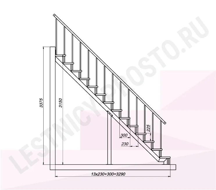 Высота лестницы 3150 - 3375 мм