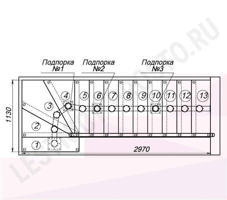 Высота лестницы 2925 - 3150 (13 ступеней) мм