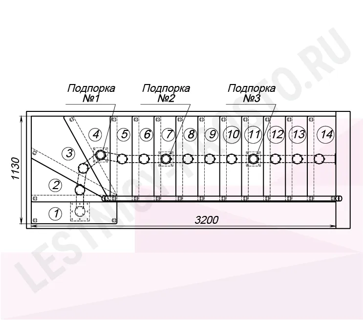 Габариты в плане 1130 × 3200 мм