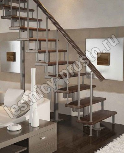 Каркас лестницы представляет собой набор модулей, которые комплектуются уже готовыми к монтажу.