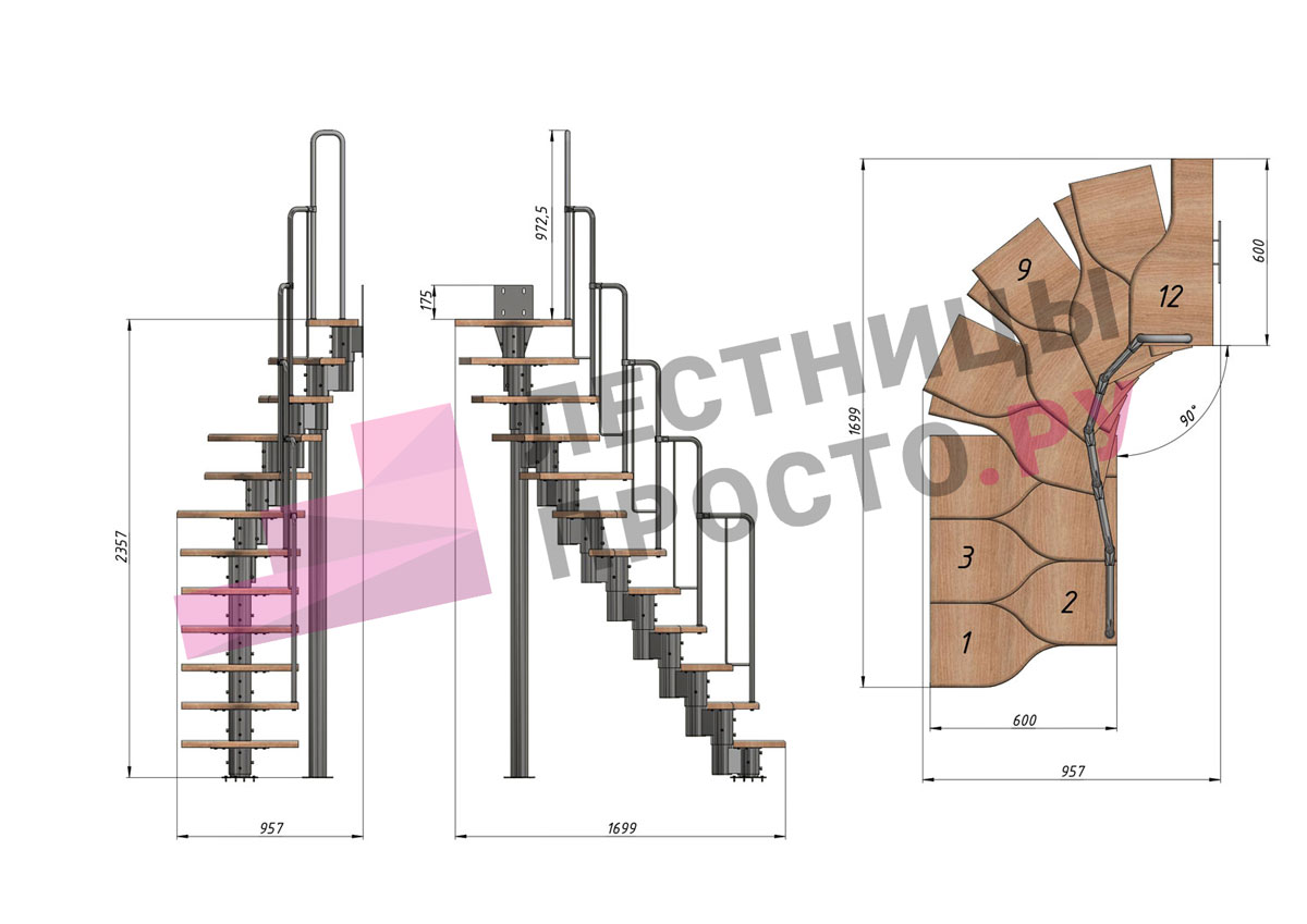 соответствует картинке, но вы не ограничены в его выборе. Лестницу можно приобрести и без ограждения, и с любым другим. Устанавливать на такую лестницу можно почти всё, начиная от классических деревянных балясин и заканчивая эксклюзивными коваными изделиями.