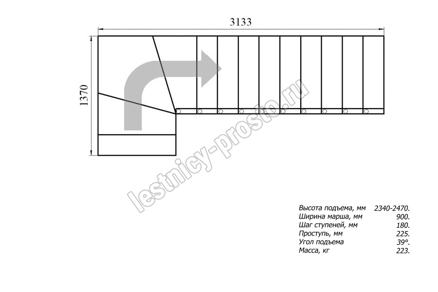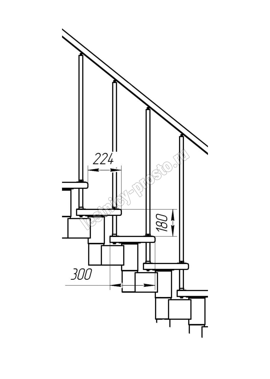 Модульная лестница Фаворит 180 2340-2470, Серый, Лиственница, Нержавеющая сталь
