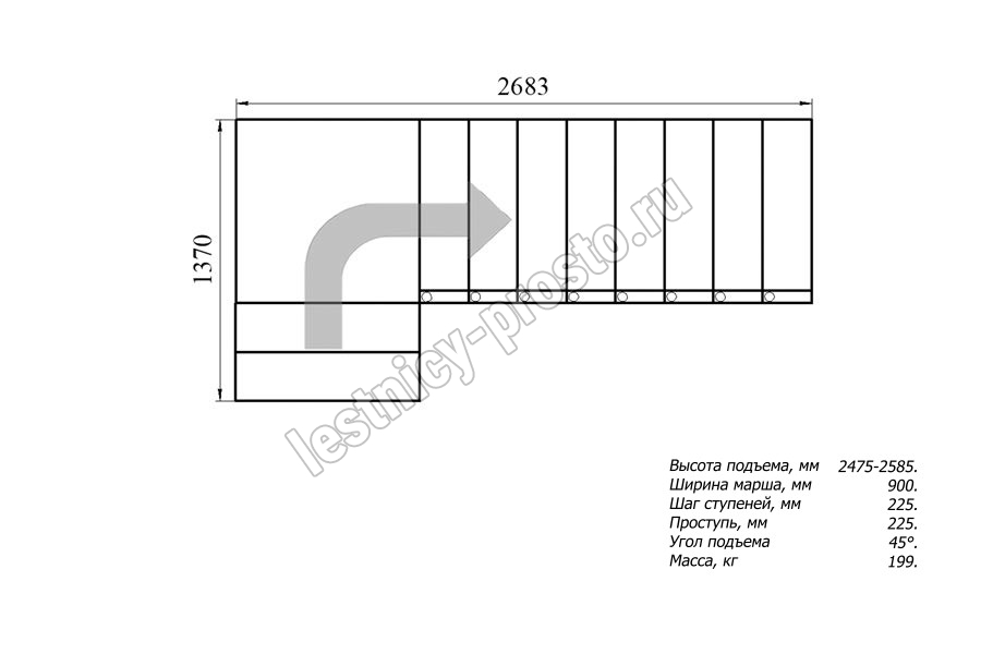 Модульная лестница Статус 225 2475-2585, Серый, Сосна, Нержавеющая сталь