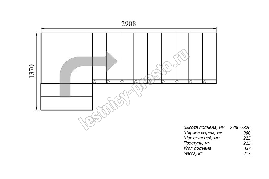 Модульная лестница Статус 225 2700-2820, Белый, Сосна, Нержавеющая сталь