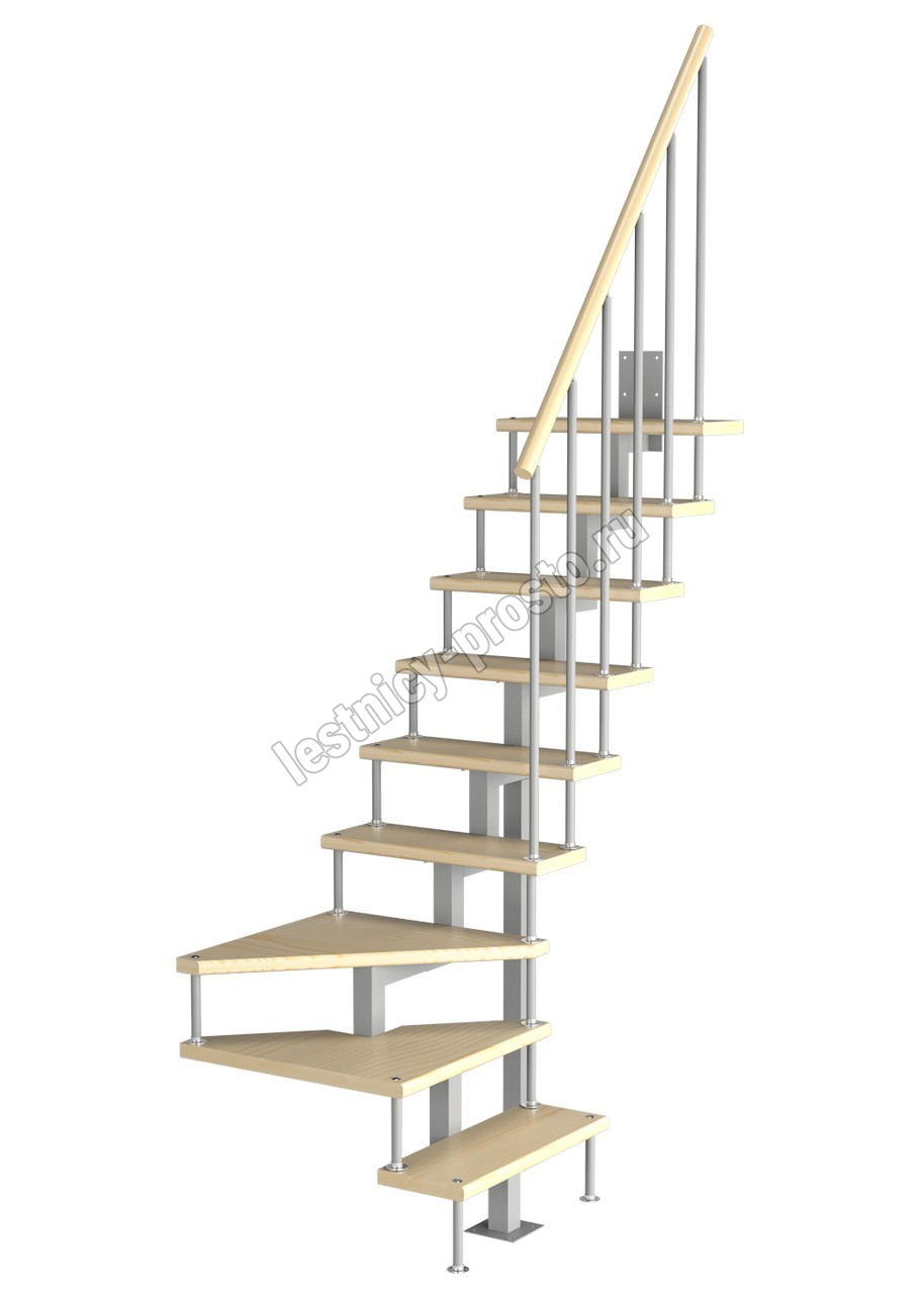 Модульная малогабаритная лестница Компакт 2025-2250, Серый, Сосна, Крашеная