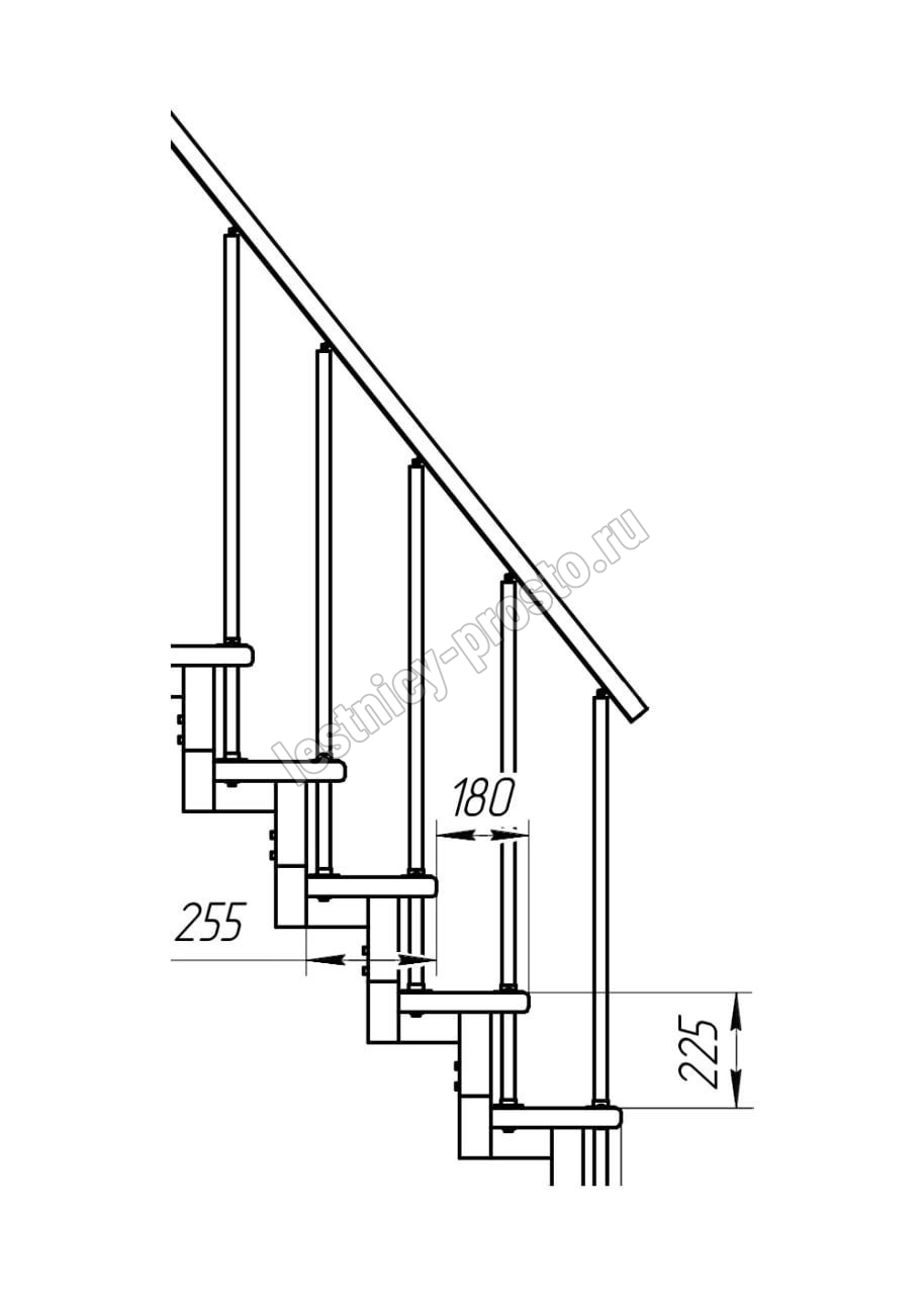 Модульная малогабаритная лестница Компакт 2700-2925, Серый, Бук, Нержавеющая сталь