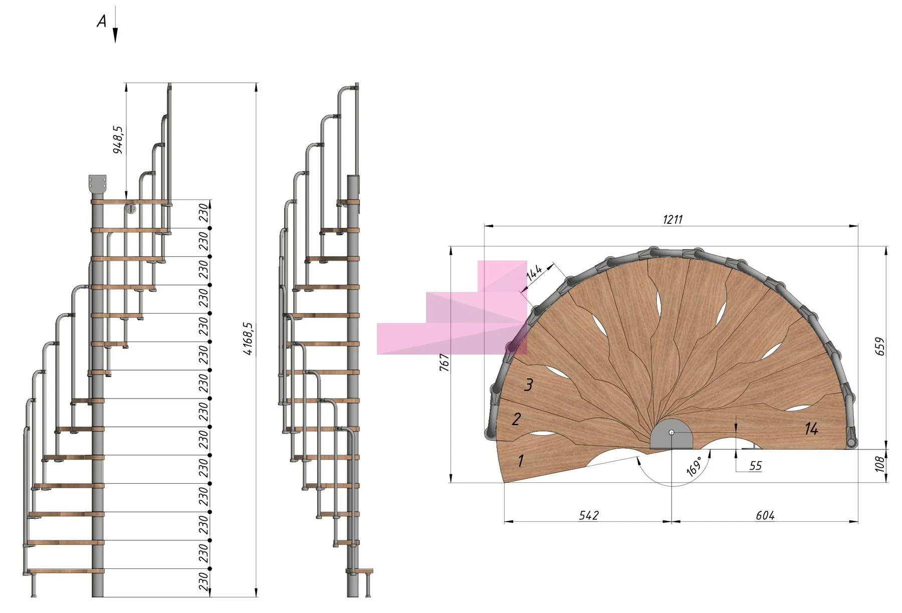 | Винтовая лестница PROSTO MINI белая, 60×120 см, h276-299 см |
