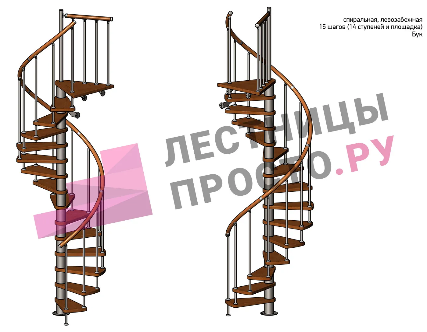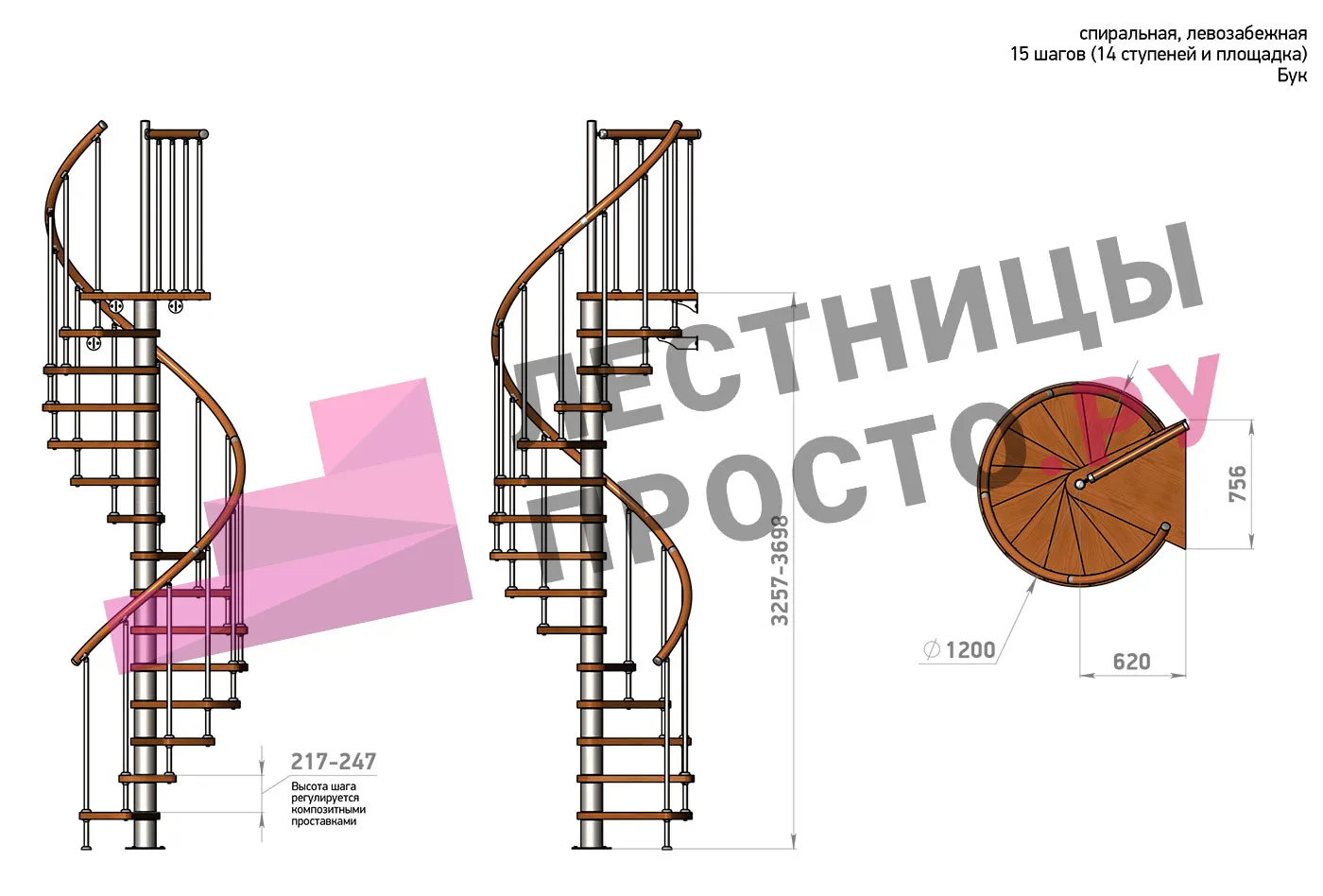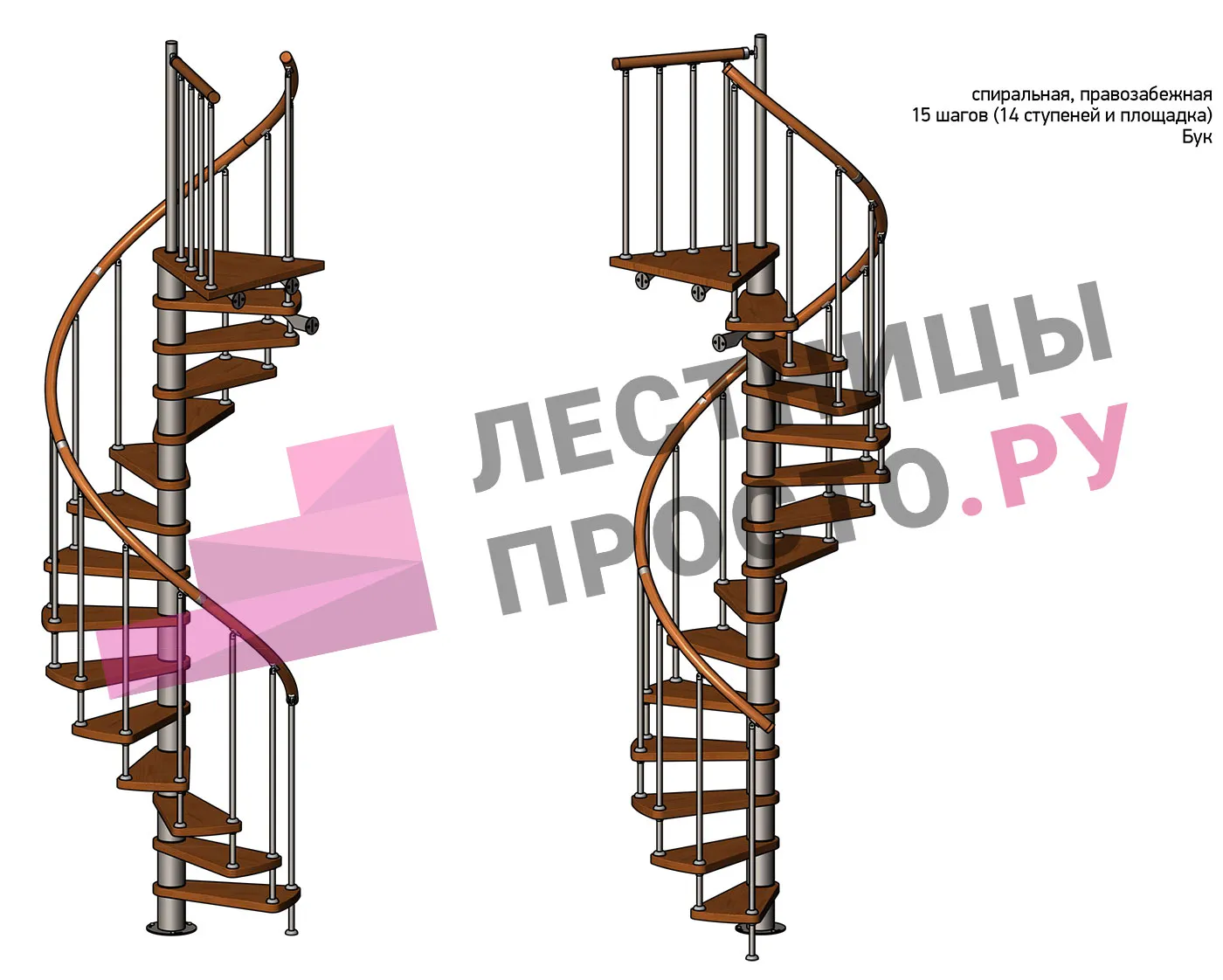 Правая, d=120см, 14 ступеней + площадка