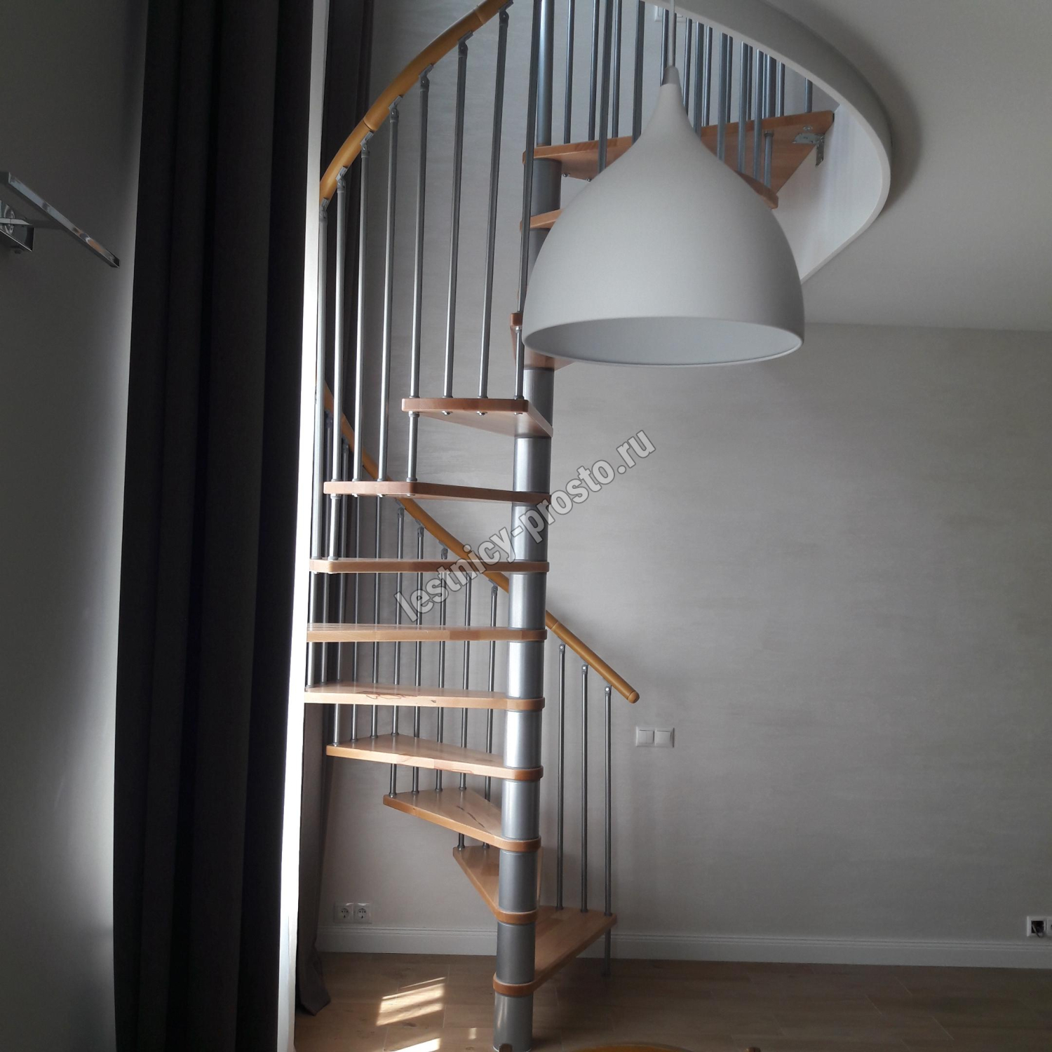 Винтовая лестница SPIRAL WOOD d120 см, серебро, лакированный бук