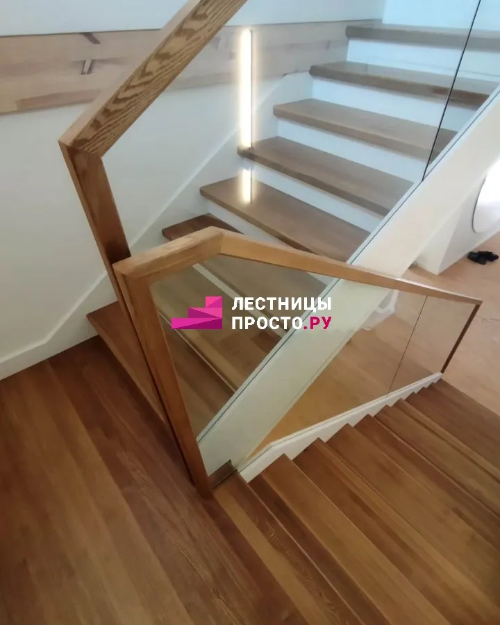 Ограждение Стекло + дуб
